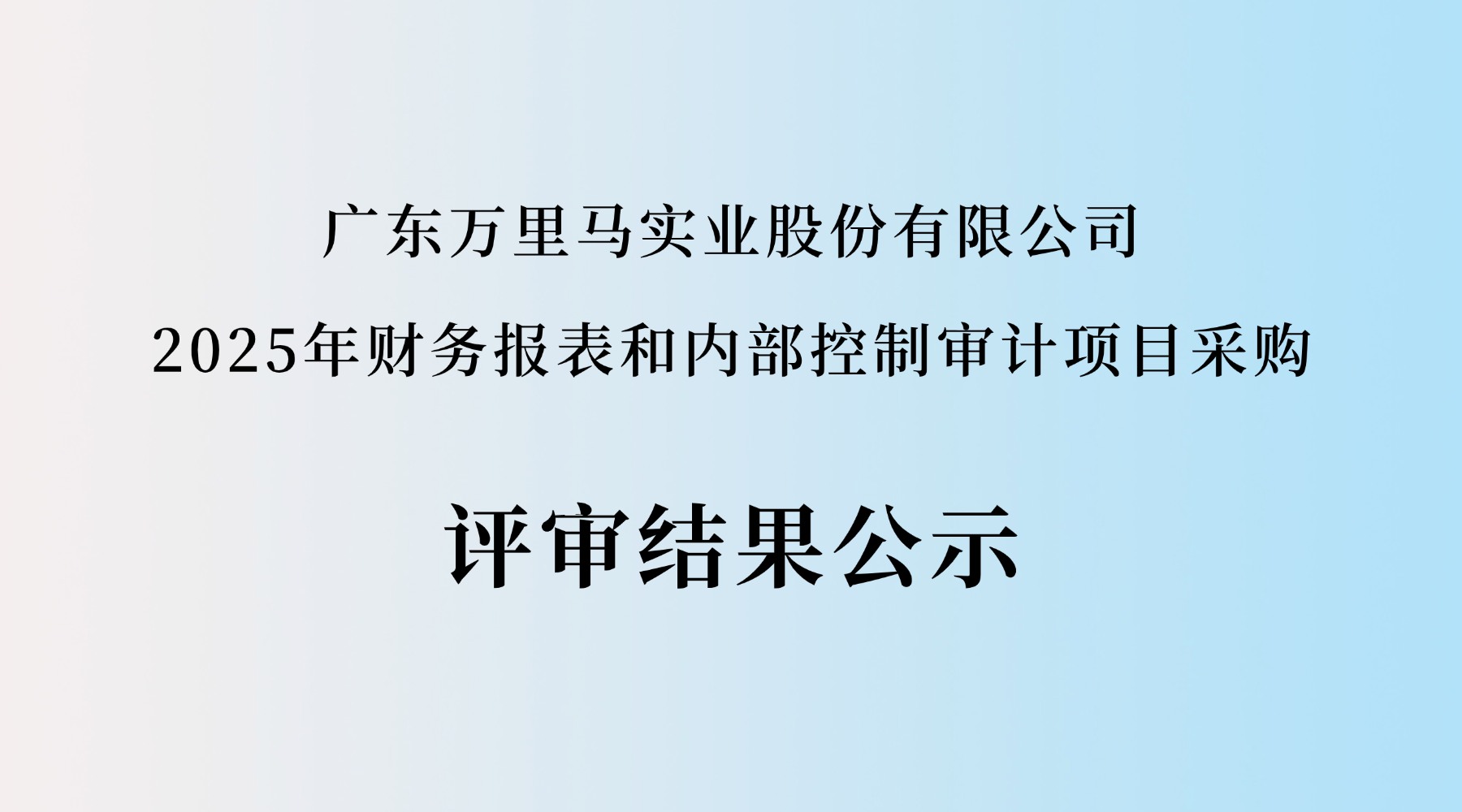 广东万里马实业股份有限公司2024年财务报表和内部控制审计项目采购评审结果公示广东万里马实业股份有限公司(以下简称万里马或公司)2024年财务报表和内部控制审计项目于2024年7月3日10:00在公司